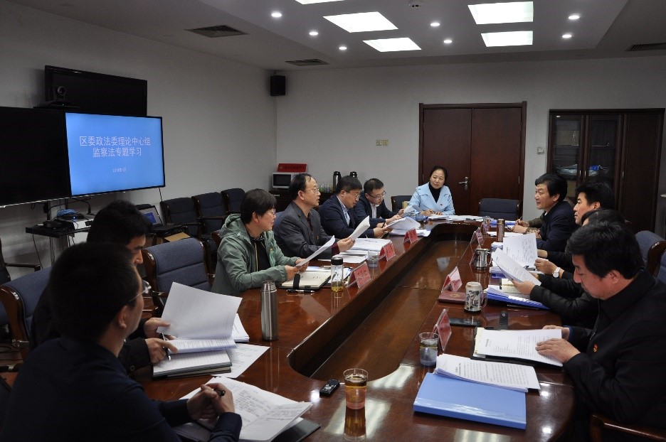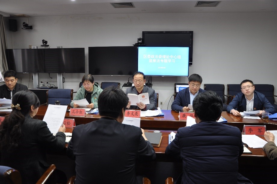 4月8日,区委政法委召开领导班子理论中心组(扩大)专题会,组织开展了《中华人民共和国监察法》专题学习,全体成员逐条学习了《监察法》,领会了《监察法》精神。