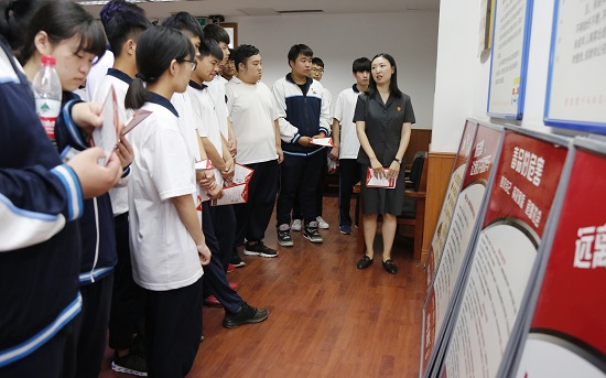 来自公交技校的30余名师生走进法院,亲身参观并感受了法院的工作、文化氛围。参观完法庭后,未审庭干警向师生们发放了禁毒宣传册,并在“远离毒品芳华绽放”的展板前为学生们讲解防毒禁毒的知识。此次活动以校园为禁毒普法阵地,面向14至16周岁年龄段的学生,有针对性地开展了一次精彩又丰富的法制教育活动。