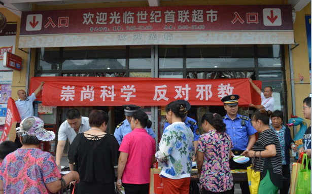 为不断增强辖区群众对邪教罪恶本质的认识,加强自觉抵御邪教侵蚀的能力,6月20日,我区河北镇在辖区范围内开展“崇尚科学,反对邪教”为主题的宣传活动,倡导追求文明、崇尚科学的良好风气。活动中,工作人员通过悬挂横幅、发放宣传资料等方式向辖区群众进行宣传,并深入浅出地阐述了邪教的本质及严重危害性,教育群众远离邪教,自觉抵制邪教,树立正确的人生观价值观。此次活动进一步提高了辖区居民自觉防范抵制邪教的意识,营造了积极向上、健康和谐的辖区环境
