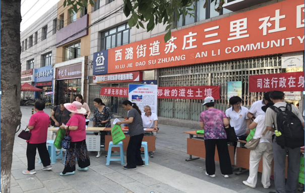 为不断增强社区居民对邪教罪恶本质的认识,提高自觉抵御邪教侵蚀的能力,6月23日,我区西潞街道苏庄三里社区在社区广场开展了反邪教宣传活动。