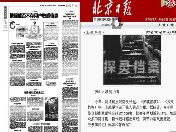 日前,房山法院干警撰写的《向马航索赔法官帮您算算账》、《网络剧:你的尺度谁来定?》等文章分别在《人民政协报》、《北京日报》合办栏目刊发。