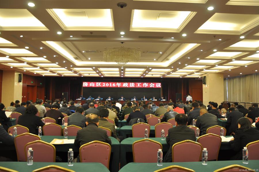 为全面贯彻中央、北京市委政法工作会议精神,深入落实区委七届七次全会决策部署,31日,房山区召开政法工作会议,学习传达了习近平总书记对政法工作的重要指示精神,总结了2015年的政法工作,分析研判了辖区面临的新形势,从防控各类风险、服务转型发展、破解基层难题、推进司法改革、建设过硬队伍等方面对2016年政法工作进行了安排部署。区委副书记、政法委书记李江,区政府副区长刘胜国出席会议,区委常委、房山公安分局局长鹿进宝出席并主持会议。政法系统单位班子成员、区直有关单位主管领导和各街道乡镇综治、维稳、流管、信访主管领导参加会议。
