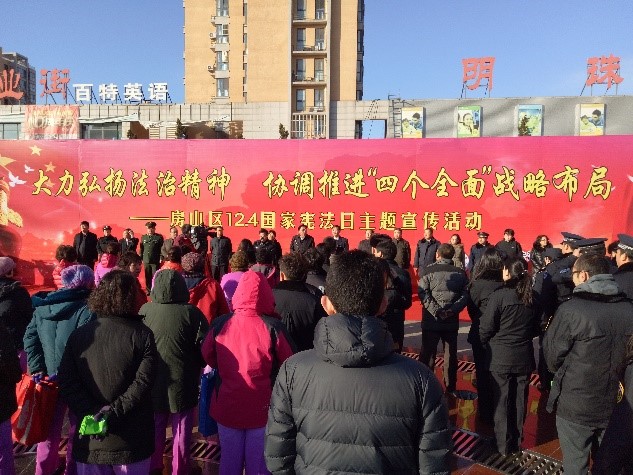 为深入贯彻党的十八大、十八届四中、五中、六中全会精神,全面落实“七五”普法规划和人大常委会决议,深入宣传以宪法为核心的中国特色社会主义法律体系,进一步增强市民法治观念,推动社会树立法治意识。12月5日,我区在拱辰街道昊天文化活动广场开展以《大力弘扬法治精神,推进“四个全面”战略布局》为主题的国家宪法日宣传活动。活动中,区流管办通过现场悬挂横幅、摆放展板、发放宣传材料等方式向广大辖区群众进行法治宣传和安全宣传教育。